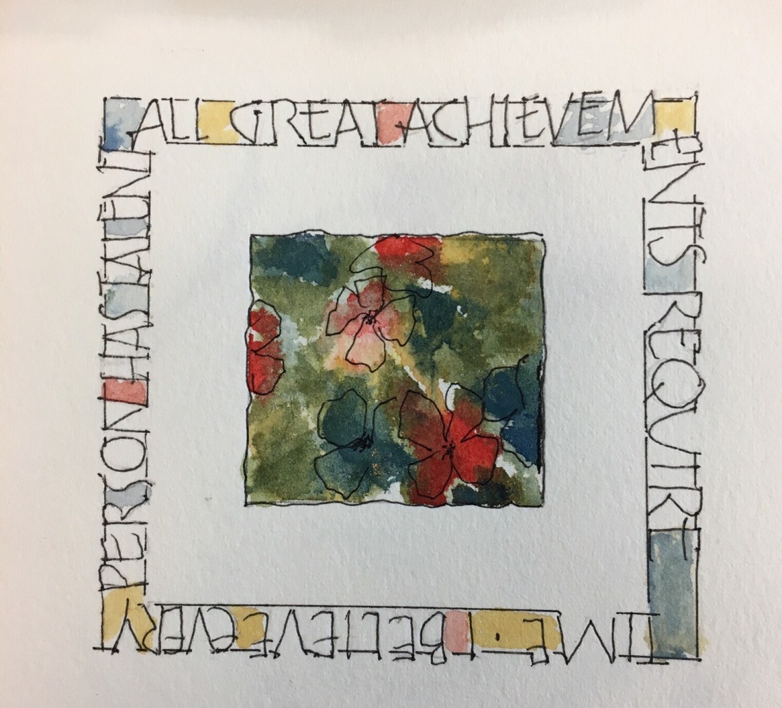 This beautiful work was created by Barbara Close, a professional calligrapher, author and teacher. I love the sentiment and the creative way she brings it to life.