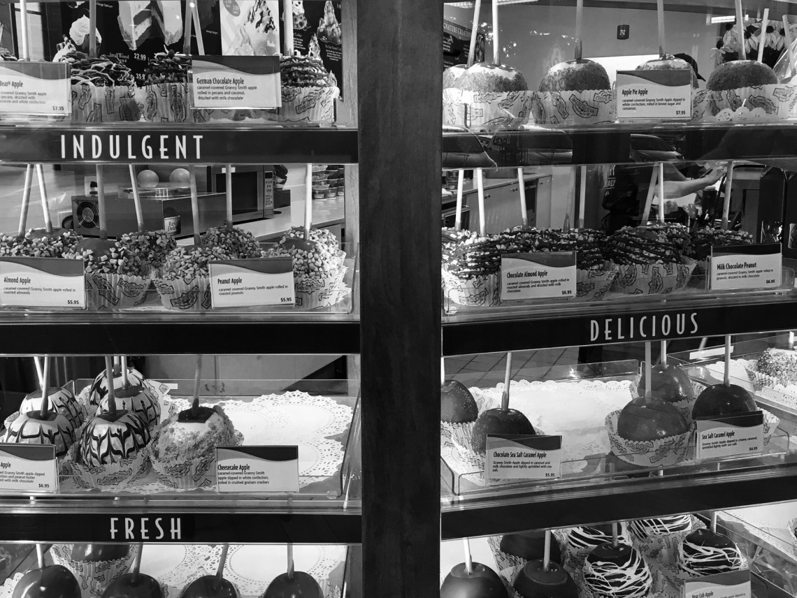 There are times in life when there can be too much of a good thing. This display case of my favorite treat was amazing and overwhelming at the same time. SO many options, so many choices, too many complications on the simple idea of a Carmel apple. When I am overcome with options I go for the classic, my favorite Carmel apple with peanuts for example. And there I go again with choosing what I know and not even trying the other options.