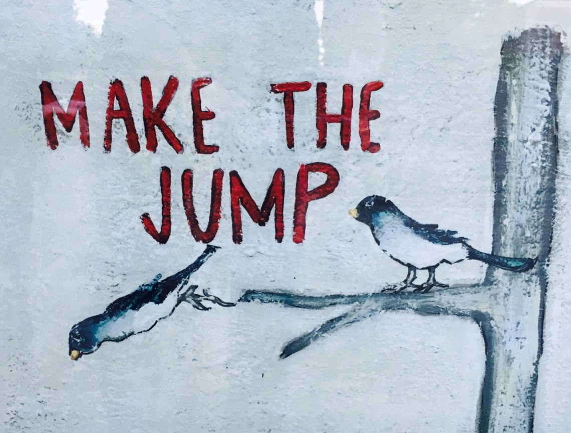 It’s that moment when you leave what you know and head into the unknown. Like when a bird leaps from the safe branch to fly into the air. If you have ever seen birds learning to fly, they sometimes end up on the ground. They do not always fly on the first jump, yet eventually they get it and soar like an eagle. But to fly, they have to leap. Which means mustering up enough courage then taking a deep breath and jumping.