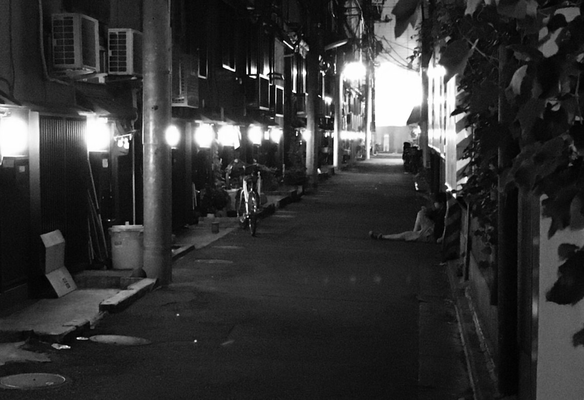 Everyone needs time to be alone. I saw this young man sitting behind his apartment in Tokyo, relaxing in the alley not thinking anyone would see him. It was evening and the darkness you see was enveloping the city. When we need to be by ourselves with our thoughts, or just need to get away from our world and the people in it, alone is a nice escape. For this teen it meant sitting in the dark alley with his thoughts and his phone. Who knows what he is doing, but whatever it was, it was important enough to him to find a quiet place to do it, which meant the dark alley.