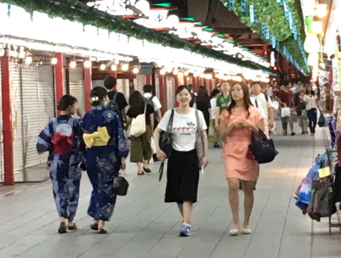I caught these women walking through a local marketplace in Asakusa before the busy day began. One pair embraces the ancient culture by wearing yukata, the casual kimono style. The other embraces western styles like graphic t-shirts, tennis shoes and bare legs. Both sets of friends are talking and walking and enjoying the fellowship while they travel to their location. They reminded me of the time I have spent walking with my friends, talking , sharing the day. These ladies may have different challenges and a completely different world, yet their need for friendship is the same as mine.