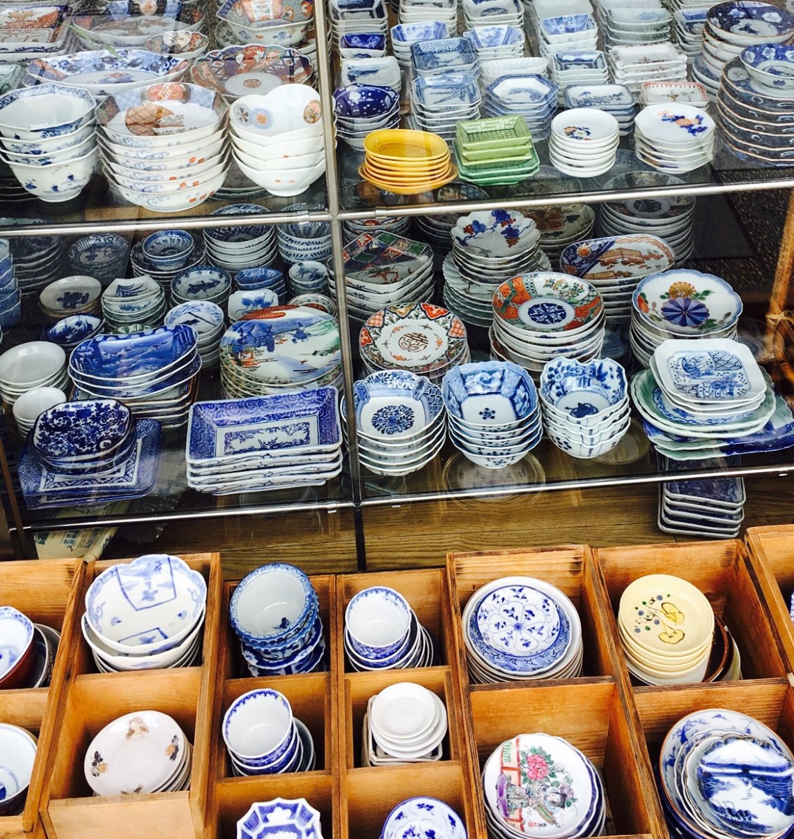 When shopping in old town Kyoto you find shop after shop where the artist lives about their store. They and their family live above the workshop and sell their wares from the storefront each day. Here you see a china shop filled on every available surface with imported dishes. Instead of diversifying what they carry, they chose to do one thing well. They offer dishes in every size, shape and in every color combination imaginable. Traditional patterns, bright colors, bowls and serving vessels align all over the shelves and surfaces.