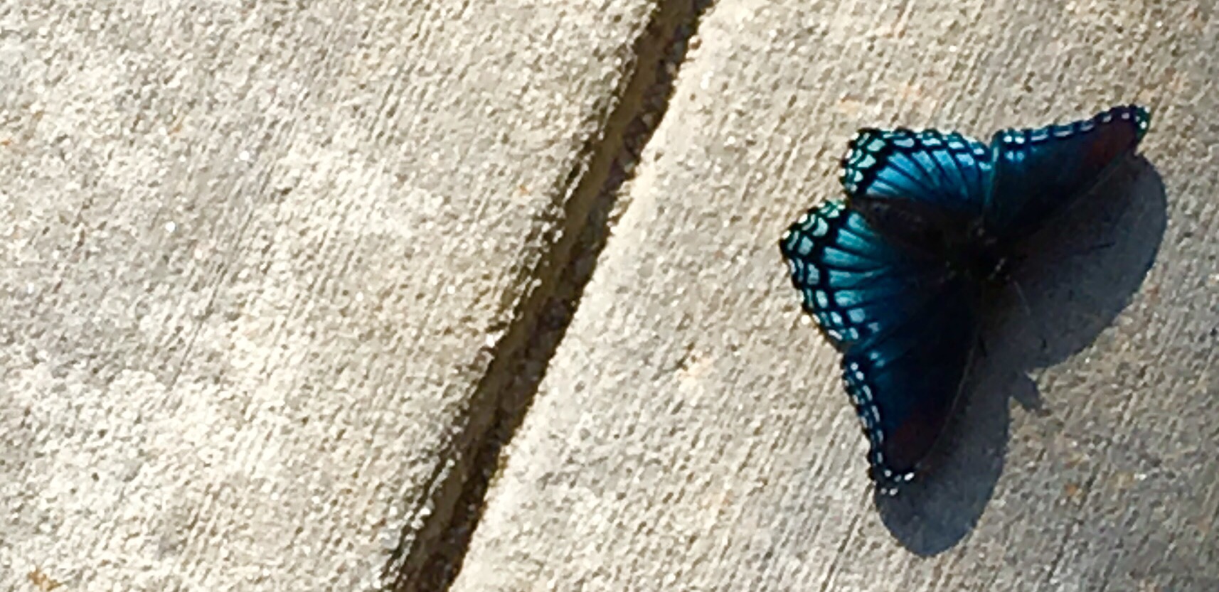As I was walking across the sidewalk today, I saw this butterfly resting on the warm cement. It rested in one spot closing and opening it’s wings, as if it was enjoying the summer air. As I drew closer it did not move, it simply continued to open and close its wings. I snapped this shot to savor the contrast between the rough cement and the elegant wings. The beautiful blues and shades of black reminded me that sometimes you simply need to rest and share yourself with the world. You don’t have to hurry, or panic, or be frightened…simply do what you do best and let those around enjoy being part of your beauty.