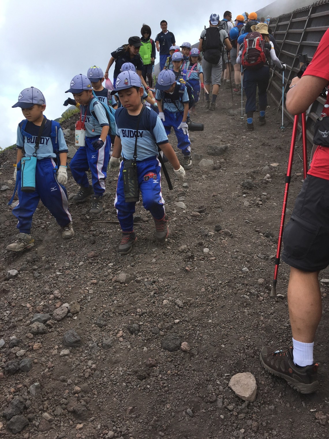 Climbing Mt Fuji was no easy feat. Our group is on the right heading up the mountain. Coming down on the left is a group of kindergartners who are heading down. They were laughing and running and having a silly time together. We on the other hand are gasping for breath and doing our best to keep up with the group. Yes, that is a pretty steep drop you see on the left and the children were wokring hard to stay on track. We ended up staying overnight in a hut at the seventh station of the mountain, our descent began at 5am the next morning. When we finally arrived at the main station, there was another group of children getting ready to climb. I recognized the new group’s guide as the teachers from this picture bringing these children down the day before. That means the teacher climbed part of the mountain each day that week.