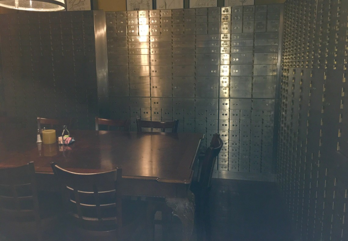 I had dinner with a friend in a restaurant that used to be a bank. When you take over an old bank building, what do you do with the vault? You turn it into a private dining space. I love the fact that these restaurateurs thought outside the box and made something fun of a very confined space.