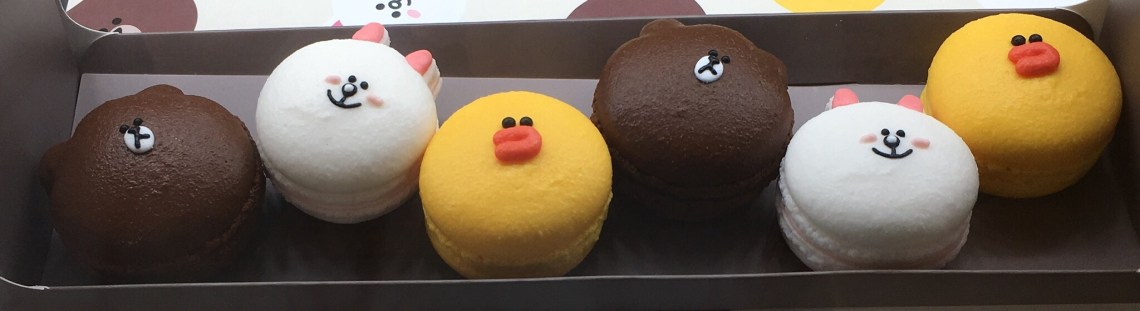 In our family we use an app called LINE to communicate with our family in Japan. It translates English to Japanese and vice versa. It lets us share pictures and tell stories without having to figure out if the others will understand. This app allows us to celebrate birthdays, anniversaries, and share family challanges. We used it to coordinate with everyone when we were last in Japan, and have had fun watching the children grow. That app has characters that it created and here we found those characters turned into macaroons.