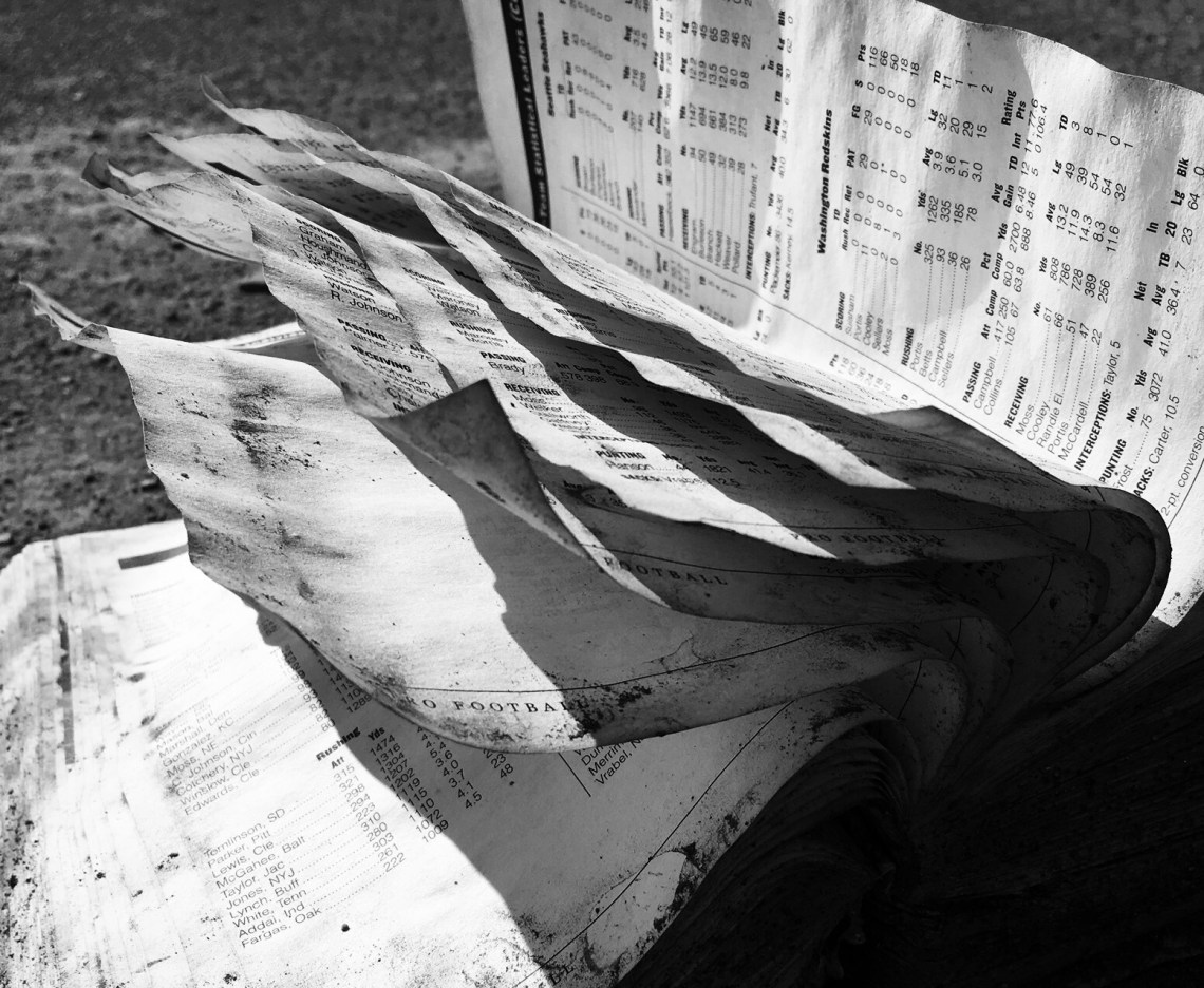 I was walking around a junkyard and saw this book on the ground blowing in the wind. It made me think about all the things the internet has replaced, including books. I mean books with pages, covers, and one where you need a bookmark to keep your place. This football statistics book has been replaced by Google. Now it lies dirty and done for on the driveway of the junkyard.