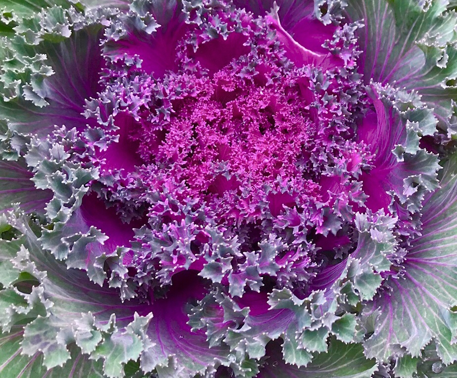 Kale is a traditional plant for this time of year in Georgia. It seems strange to think that purple, pink, and pale green are predominant colors during the holiday season. If you travel anywhere in Atlanta you will see kale planted throughout amazing gardens and displays. I think it is beautiful, my husband hates kale. It is a running joke – a tradition – for me to point it out to him every time we see it in public, and his response is usually a forced gagging noise.