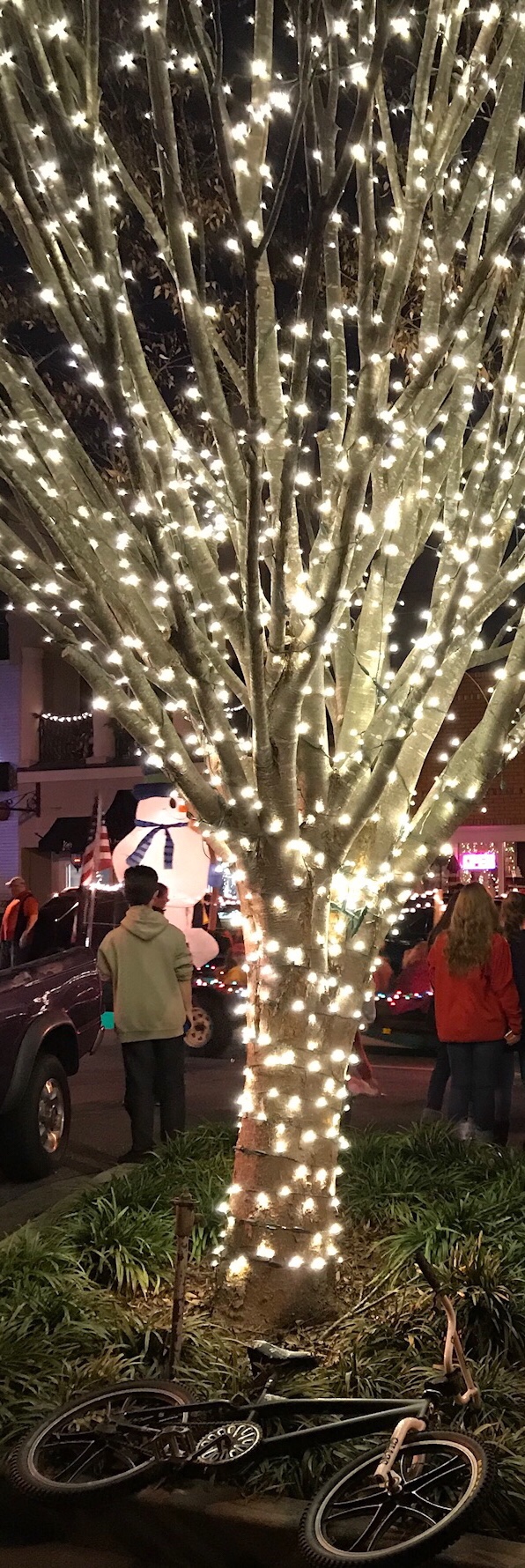When we passed by we felt the infusion of Christmas cheer. We got excited. We waved at Santa. I thought about grabbing for candy. We all walked away with lifted spirits and a sense of seasonal joy. Who knew a bike, lights, candy and pick up trucks could contribute so much to the happiness of small town America.