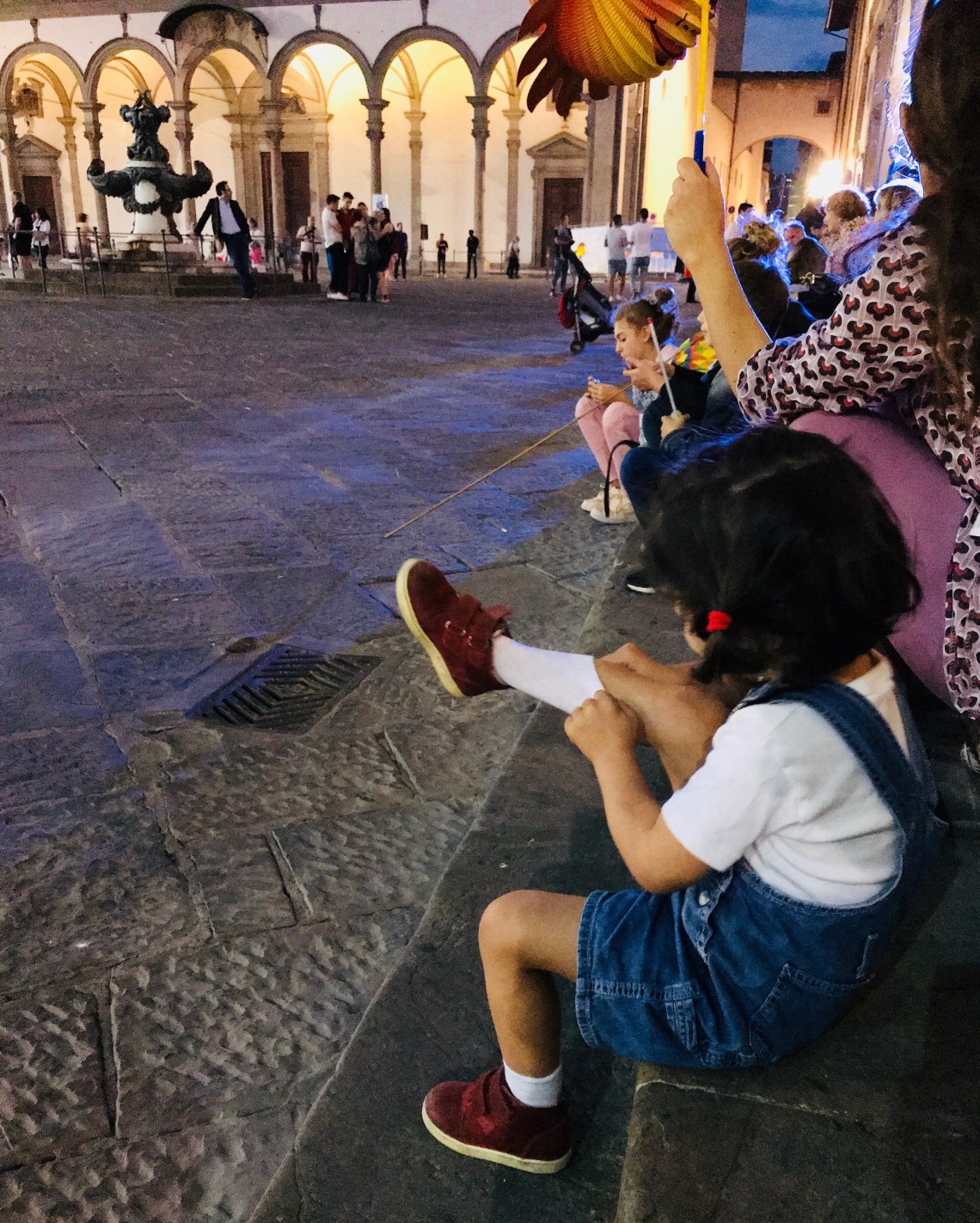 We enjoyed an evening in the Santissima Annunziata Square celebrating the Festa Della Rificolona (Festival of the Paper Lanterns). It celebrates the birth of the Virgin Mary and all the children of the community make lanterns. We sat on the steps next to this little girl who was excited to be staying up past her bedtime and couldn’t wait for everyone else to arrive. She let her Mom hold her lantern until the crowd got bigger.