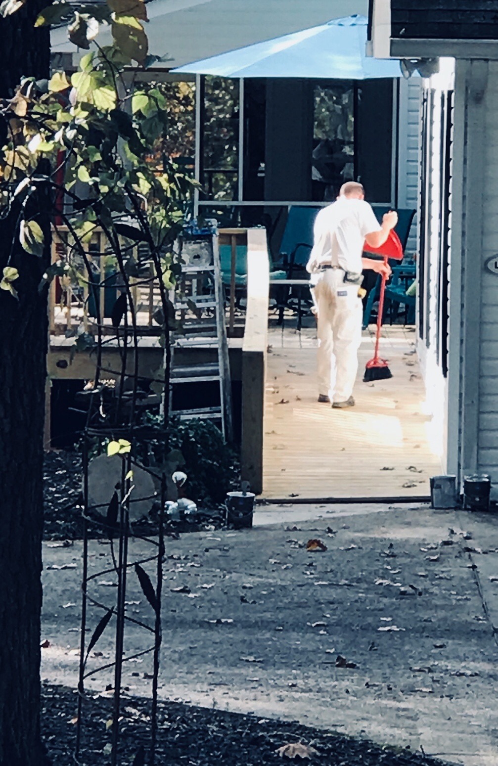 We have painters working at our house this week. They live in our neighborhood and have done a fantastic job! Here you see the owner sweeping our deck at the end of the day before he leaves. When I saw this I knew he ran his business with true and honest leadership.