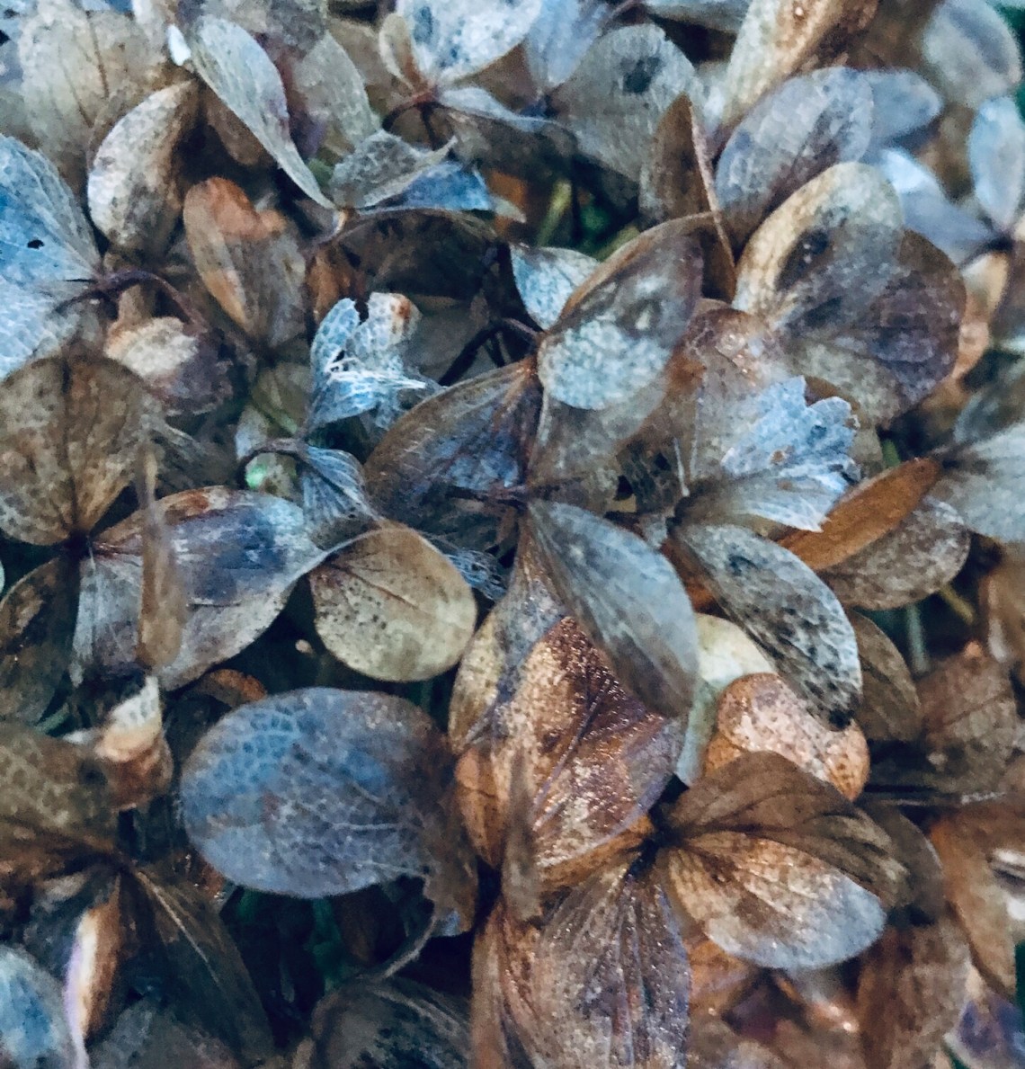 These Hydrangea blossoms were dried and frozen over the past few frigid weeks. Though they are old and worn out they still possess a beauty and elegance that only age can provide. They remind me that even as we age we find new ways to bring color and joy to our world. It isn’t over when we think the bloom has left our cheeks; it is a new beginning for a splendid way to show off our hidden talents.