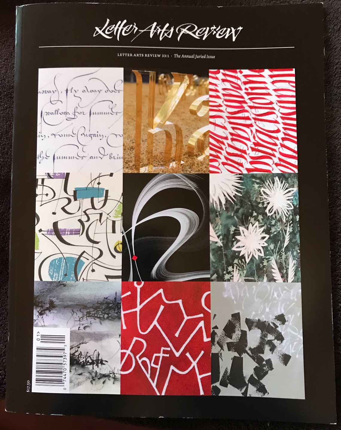 This magazine arrived in the mail this weekend. It is my favorite calligraphy resource. Letter Arts Review is the premier magazine for artists who create using hand written letters. I started reading the magazine thirty years ago when I first picked up a calligraphy nib. My first teacher gave me a copy and told me to subscribe. I did and after years of reading it I thought it would be cool to have a piece of my work published in it one day.