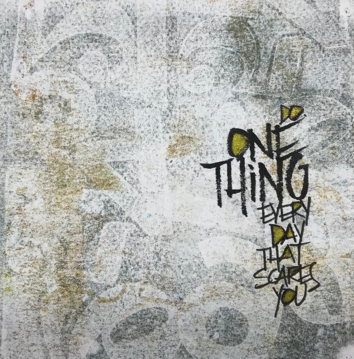 This week’s calligraphy prompt was to somehow honor Eleanor Roosevelt. She is credited with some of my favorite quotes, so I knew it would be hard to choose just one. This quote reminded me to do something each day, so I took Eleanor’s advice and did something scary. The background is a monotype created using gel printing techniques. The reason why it can be scary to work with is because you only have one chance to write on it, once you start there is no going back. You mess up and you may never be able to recreate that exact background. I used a brush with Sumi ink and a glitter brush pen.