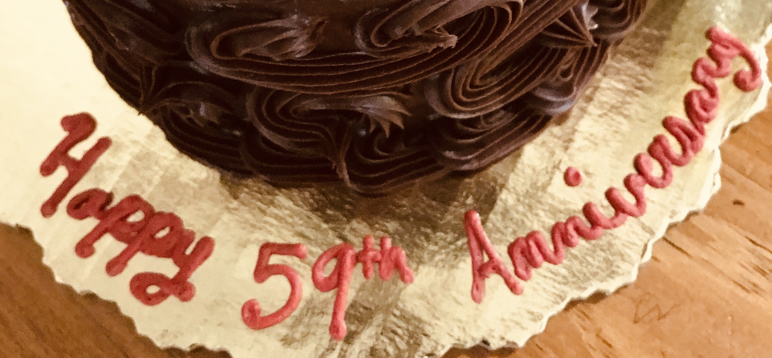 My parents celebrated their fifty-ninth wedding anniversary yesterday. My Dad bought my Mom her favorite chocolate cake as part of their celebration. In a time and culture where fifty percent of marriages end it is a great blessing to have parents that are still married, still like each other, and still are each other’s best friend.