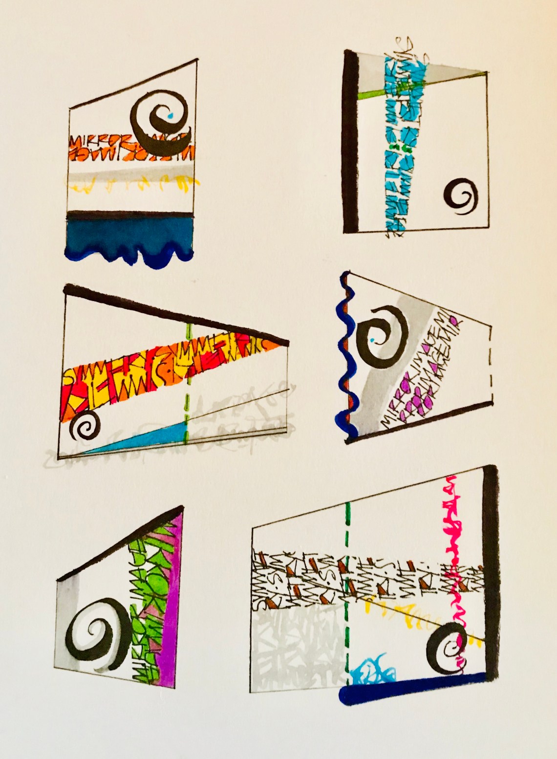 It’s week twenty-eight and the prompt was the word Symmetry. I spent a lot of time thinking about how I wanted to create perfectly symmetrical letters, and yet I was afraid of not being able to execute perfectly. So I procrastinated. I visited a new quilt/knit shop and found a piece that inspired me. The quilt squares are asymmetrical, and it hit me. Instead of trying to be perfect I would do something that was the perfectly asymmetrical. I used Zig Kuretake brush pens on mixed media paper.