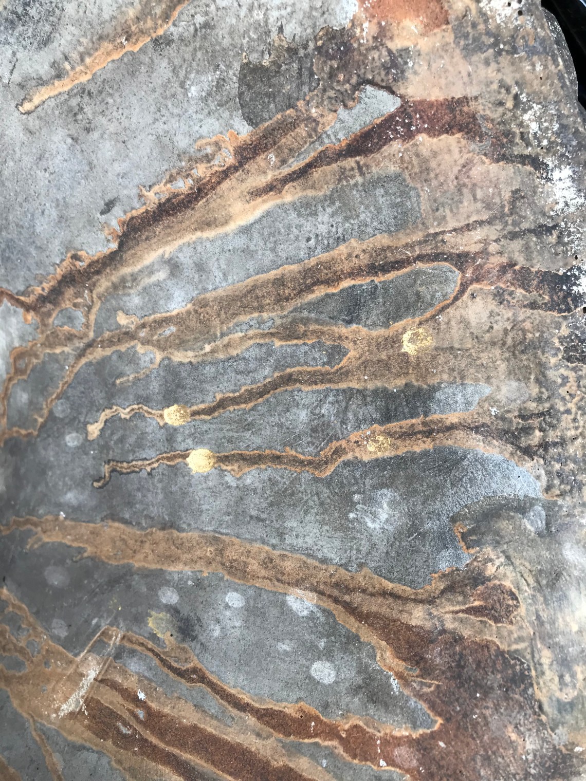 This is the inside of an outdoor planter. The outside of the piece doesn’t have this same character. Though the outside is beautiful I think the inside is more interesting. The problem is that once you fill it with plants and flowers no one will see the inside.