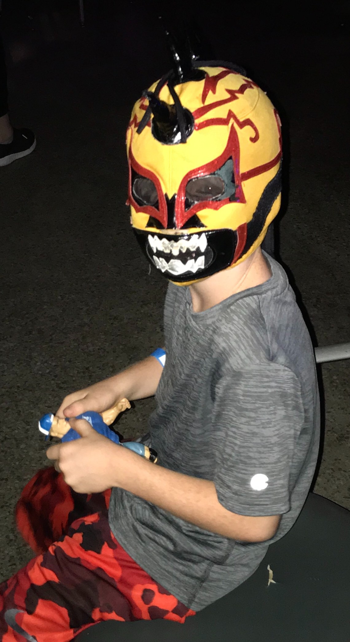 My husband and I attended a match in the Southern Honor Wrestling program. It was quite a spectacle – hilarious, dramatic, silly and fun all rolled into one. We shared a table with this little guy and watched him have a blast! He cheered for the good guys and booooed the bad guys. He loved wearing his Nacho Libre style mask and played with his action figure all night long. He reminded me what pure enthusiasm looks like. He was a never afraid or ashamed to yell out his thoughts and he encouraged others at our table to do the same, simply by doing it himself with such exuberance.