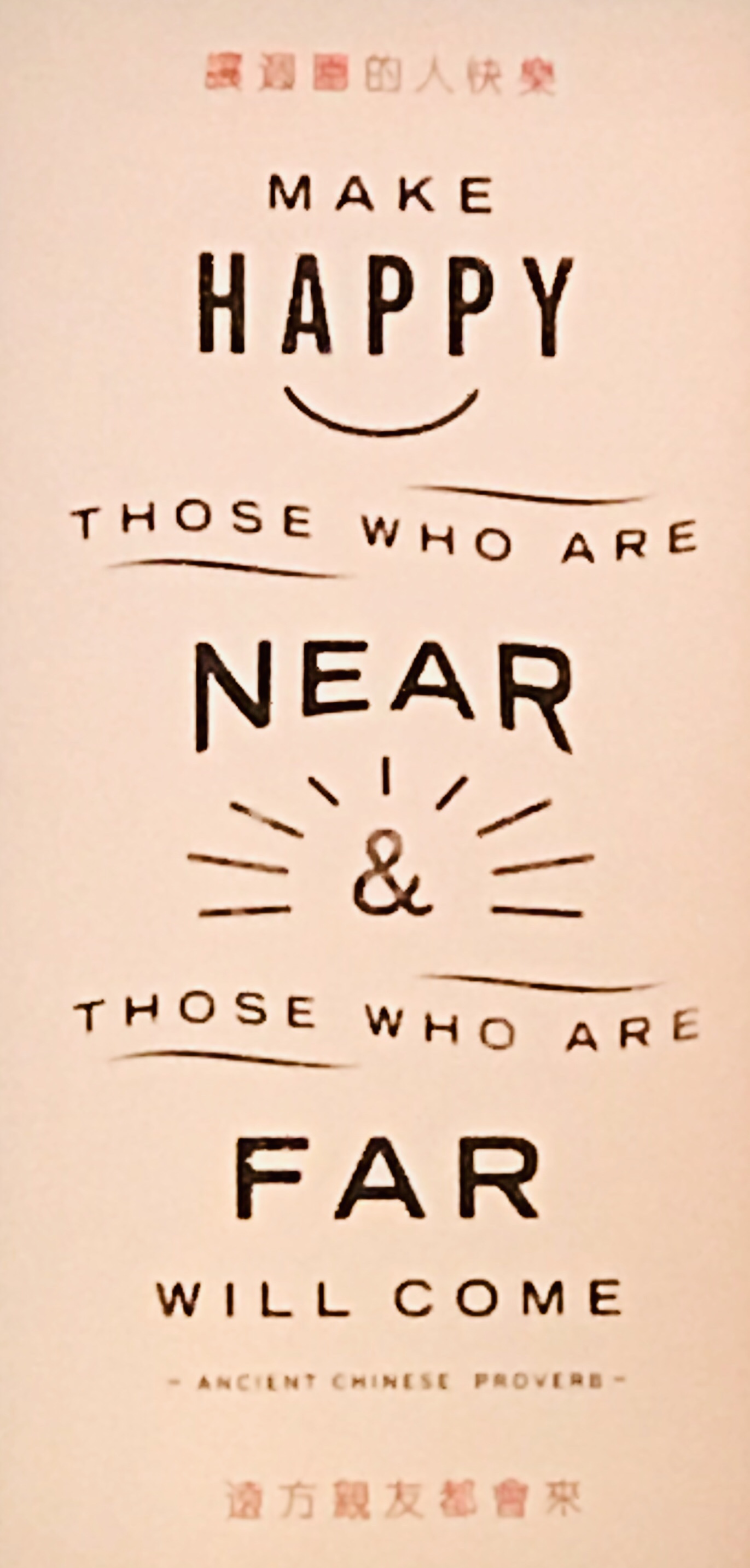 This ancient Chinese proverb was hanging in a fast food restaurant. As I stood in line waiting to buy dinner I was struck by the wisdom of these words. It reminded me that we can only control so much, so do what you can and let the rest work itself out. We can nurture the people in close proximity and hope for those who are far away. Other than that, time and distance will work everything else out.