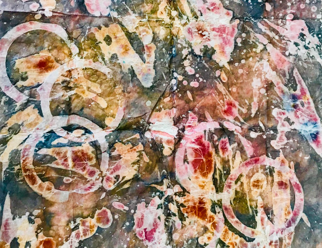 I share this photo as it was an experiment in batik printing gone awry. I was testing how circles would look and didn’t like the way they were too crowded and incomplete, so what to do? The usual thought is to stop and do something else, in this case I decided to add more wax, more color, more elements. I paused and thought about how adding more would change everything, and it did. In the end all the wrong turned out right, but to get there I had to be open to completing it differently than I had first imagined.