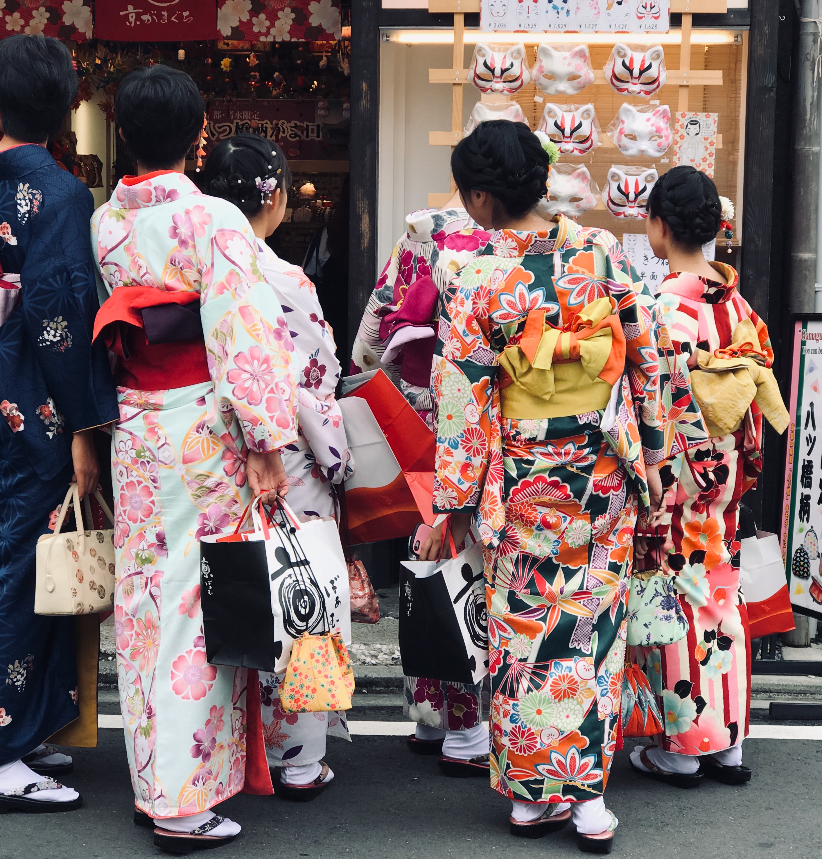 Smart retailers in Japan have started renting kimono for men and women to wear as part of experiencing Japan. It has become very popular for both genders and it is a beautiful sight to see the different colors an patterns through the cities.