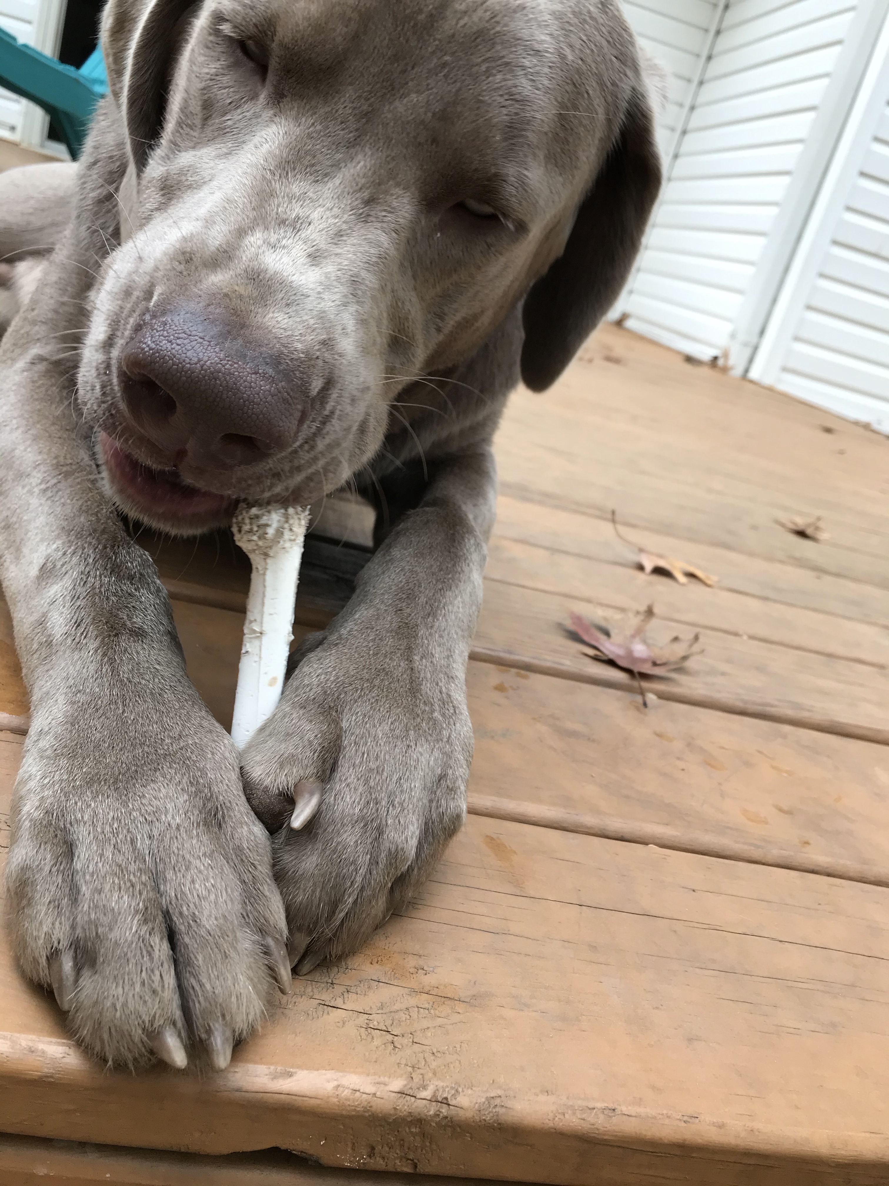 Usually after a good wrestling match with this plastic bone Gravy takes a nap. Any pent up frustrations or energy is long gone and he dreams of the day when that bone is gone. Let several hours of hard work do the same for you, then maybe take a nap!