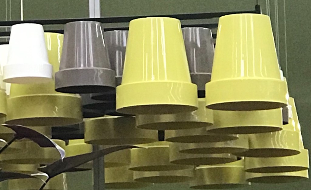 I was shopping in a hardware store and happened to look up. They had turned flower pots into lamps, fun and brilliant. I had seen this idea in magazines but never in real life. I was inspired to see this idea move from picture to reality.