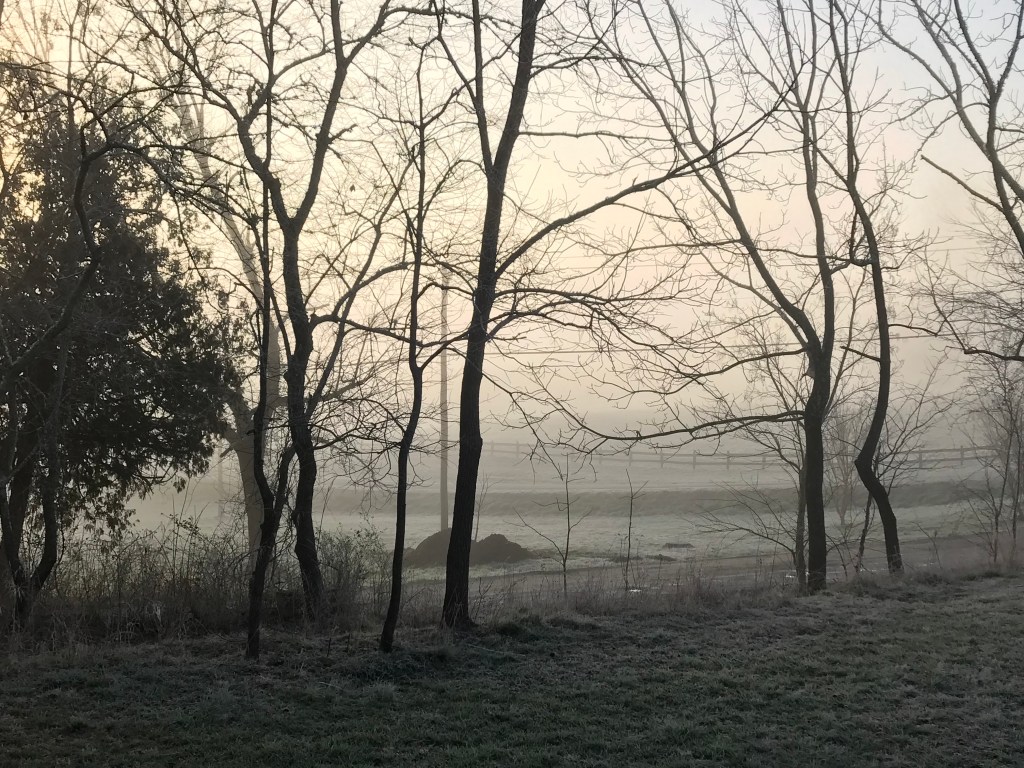 The fog rested softly on the grass as the morning slowly showed itself to the world. Within five minutes of the sun rising this beautiful fog had completely lifted revealing the green grass and budding flowers. In an instant the day had changed and the peaceful beauty of the fog was gone until another day.
