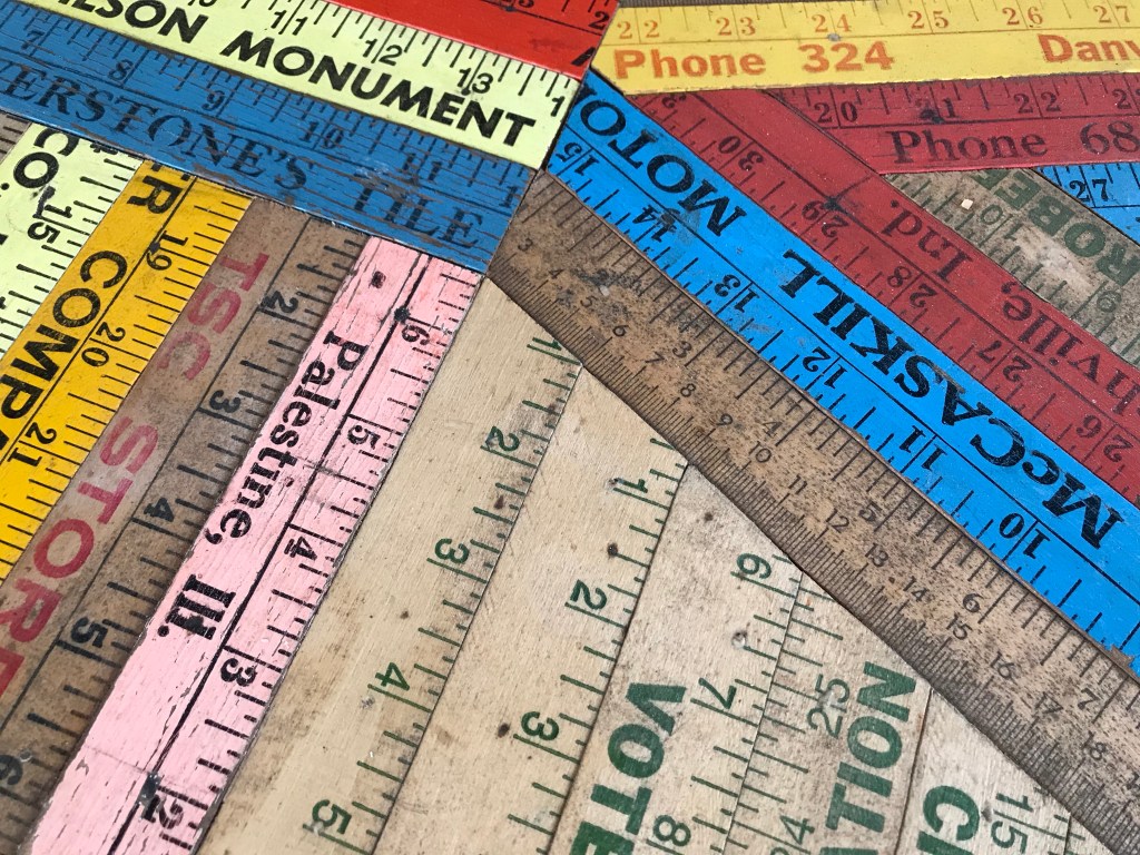 This is a creative use of vintage yard sticks, it is a table top. I love how they combined the colors and directions to build texture and interest. Sometimes it isn’t how you use what you’ve got it’s how to change things in how you use what you’ve got. Anyone could have patterned the rulers along straight lines, this craftsperson mixed it up and delighted us all.
