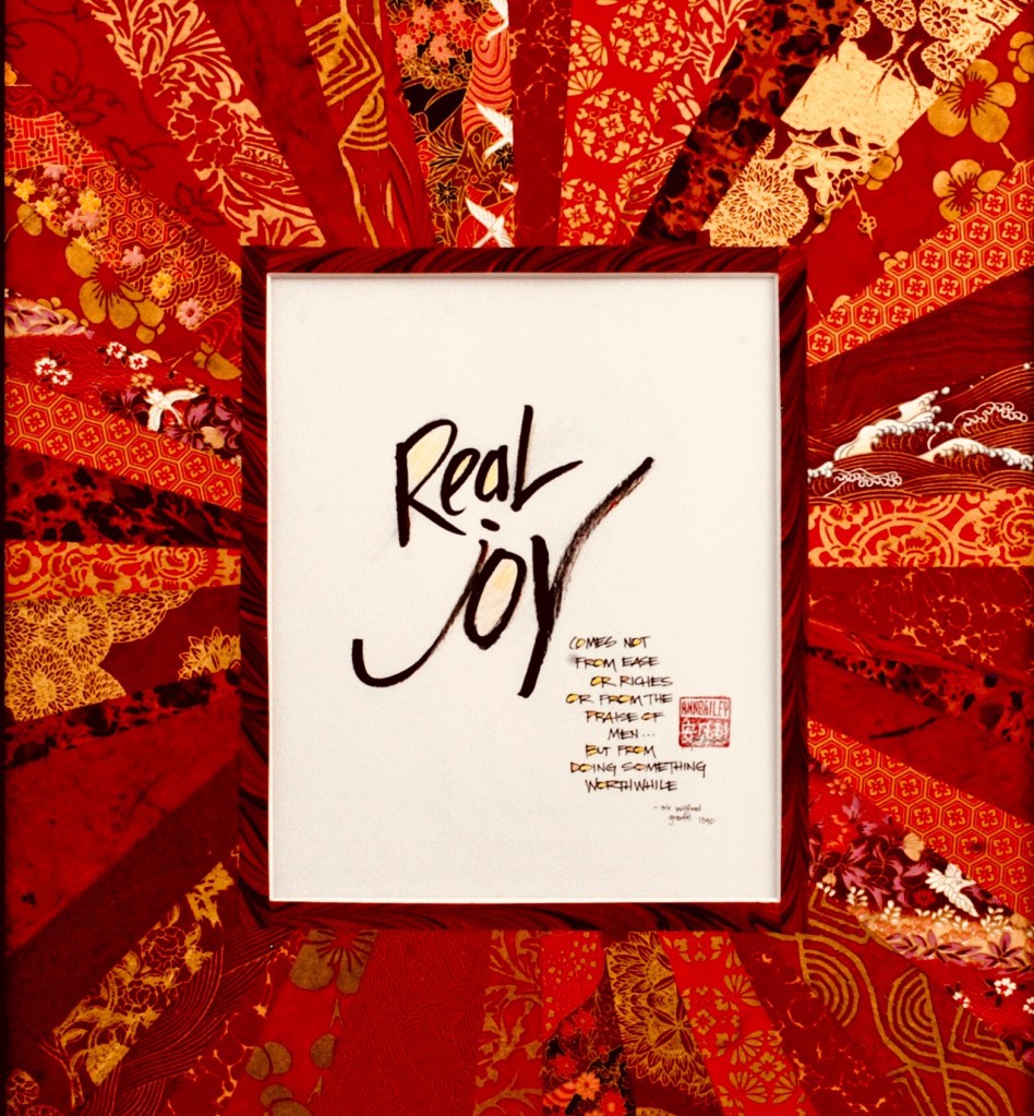 Joy is not something we can buy or seek to obtain from others, “real joy” comes from doing something worthwhile. It is not the having of gifts and talents that matters, it is what we choose to do with them that makes our world and the world of others a better place to live.