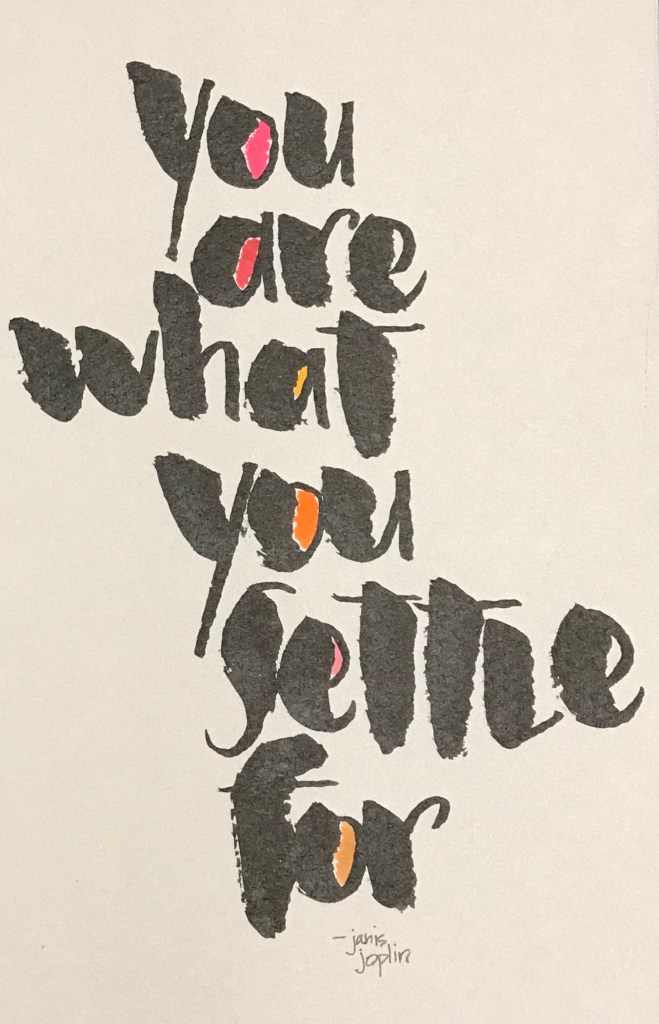 I think it’s tempting for us to visualize a quote like that by focusing on other people who may want to hold us down. But the focus of the quote is you not others. The part that makes it work isn’t the other people, it is about being clear on who you are and who you are not. For Janice Joplin settling for less wasn’t about being rich and famous, for her settling for less was living her life by being her full self.