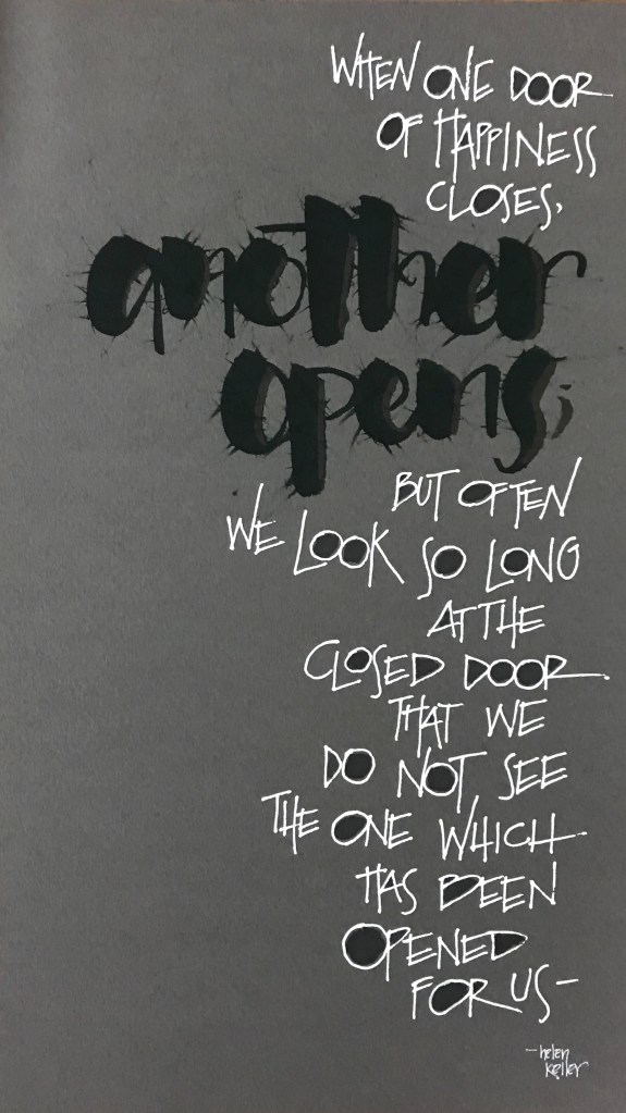 We’ve all had disappointments and dashed hopes. We expected something to move forward or last forever and then suddenly the door closes. These words remind us all not to dwell too long on what is closed to us, instead focus on what other opportunities life is presenting right in front of our eyes. These words are made even more powerful when they are from someone who was deaf, dumb and blind. Remarkable.