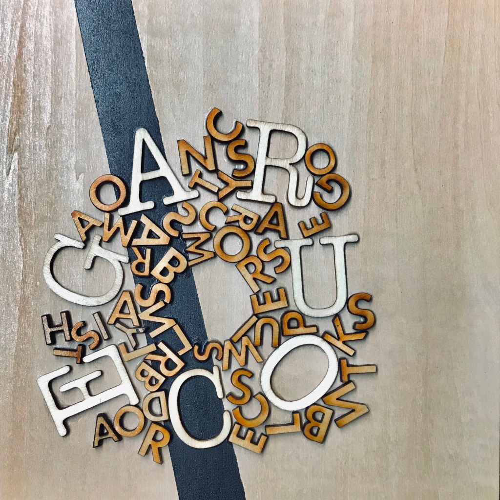 My nephew and his wife have started a new business making items with a glow forge. The forge allows them to cut wood, acrylic and etch metal. When I visited this last weekend they gave me a bag full of random leftover letters from signs and items. I brought it all home and created this piece by gluing the random leftovers to a wood canvas. I think it turned out pretty awesome, is very striking and the word courage reminds me that doing something new takes courage.
