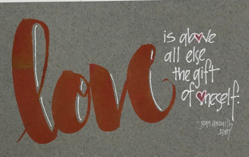 So we’re back to where we started. Loving all the parts of ourselves serves as a foundation for healthy lives and relationships. Maybe today is a good day for self reflection to understand what prevents us from truly loving ourselves. We can face it and deal with it or allow it to be the thorn in our life. For as this quote tells us, love is above all else the gift of oneself to ourselves and others.