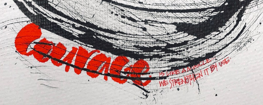 I see my personal challenge this year of 365 pieces of original calligraphy for this blog as a huge test of my courage. I write everyday so adding the process of creating artworks as well gave me cause for hesitation. Did I have the time, or more honestly did I want to make the time? By making this commitment I had to muster up the courage to say it out loud, to write it down and post it to the internet…once that was done I was committed. My courage is tested everyday as I post both my words and my art.