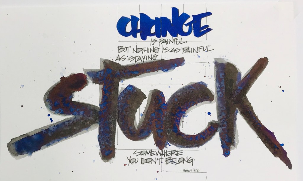 Like most quotes, this is a ginormous oversimplification. Saying that staying stuck is more painful than change is a big statementbecause deep-down character change can be torture. In my opinion, if you want the best illustration of the how hard life change can be, watch the Biggest Loser or Hoarders.