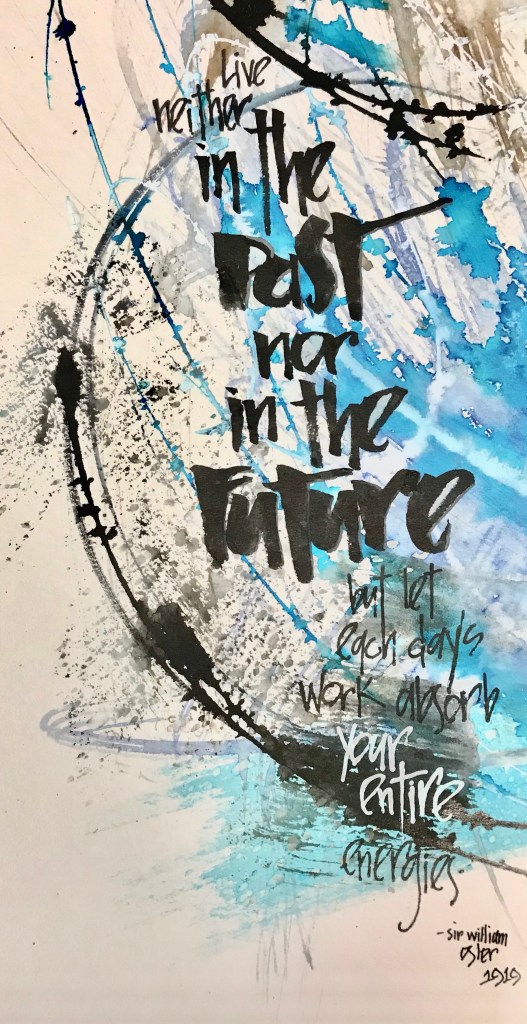 As I read and reread this quote, this is great advice and a very hard thing to do. Our past haunts us and the future eludes us, so living each day absorbed in it’s entirety sounds simple and yet is so very difficult to pull off. In order for this to happen a couple things must be true.