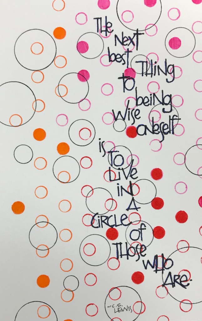 So where are you in your current place in life? Are you the one in need of some wisdom or the one with wisdom to give away? Maybe you are a little bit of both depending upon the situation in life. I hope that no matter in which seat you find yourself that you have a circle of wise people where you can both give and receive the wisdom necessary to navigate this strange world in which we live.