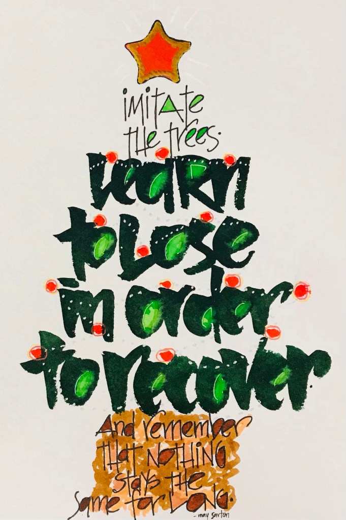 This quote from Mary Sarton reminded me of this year because we all have lost and had to learn to recover. These months have definitely reminded us that nothing stays the same for long. Life is all about change. We watch the trees thrive, change, lose and recover year after year. They only grow by going through this cycle, just as we only grow and get stronger by allowing ourselves and those around us to evolve.