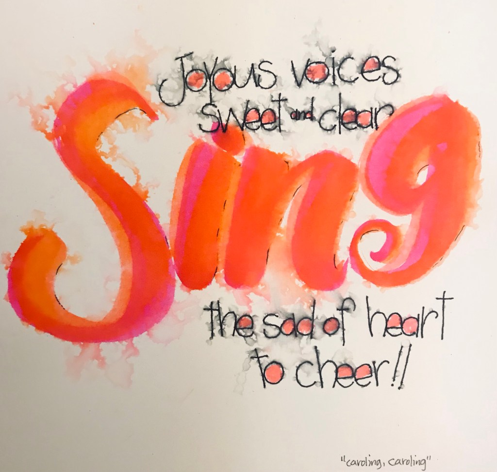 It seems crazy to spend months preparing for one day, so I plan to celebrate the twelve days of Christmas this year via calligraphy. As I listened to Christmas Carols for months I heard snippets and phrases that I want to pull out and highlight. Each phrase may be one that is easily recognizable yet with a meaning that struck my heart each time I sang along with the radio. I will be sure to include the name of the song.