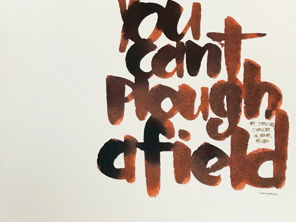 What do you think about – a new home, a new job, a new idea, a new process for doing something? What thought keeps you awake at night enough to get you up in the morning to plow the field? Hooray for those who have the gumption to get going, keep moving, and to get back up after failure. It is these doers who make the world go round, even if it can feel like the idea was more glamorous and joyful than the execution of that idea. No matter the difficulties, make the decision today to do something that takes your idea and puts it into reality.