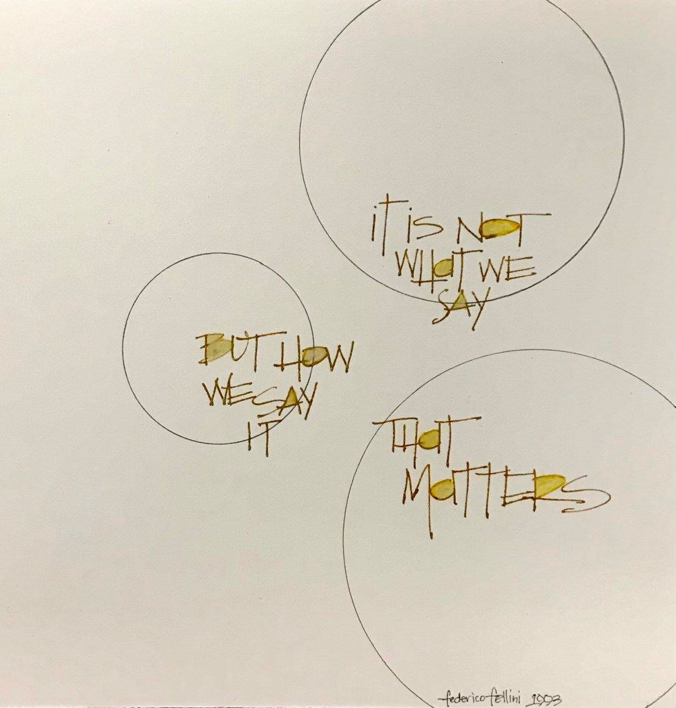 I love that this quote comes from a famous Italian film maker, someone who turns words into pictures that have the power to change our lives. Most of us have been moved to tears in a movie. We have been angered, betrayed and conquer all right along with the characters in films we watch. Great movies have the ability to help us process our fears, deal with our own disappointments and give us the time and space to think it all through. Great movies leave us with the vocabulary to comment, laugh and remember special times. Our favorite on screen words linger within us and come out of our mouths at just the right time.
