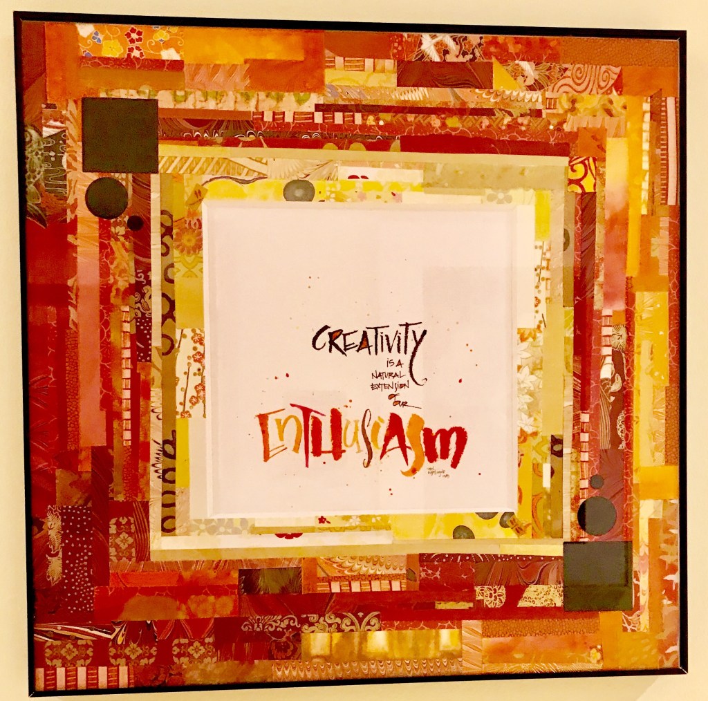 This is number four do five in the ‘Scrap Project’. The colors are oranges, reds and a bit of yellow. I wanted those colors to help highlight the word enthusiasm. The photo isn’t that great yet the idea worked out very well.