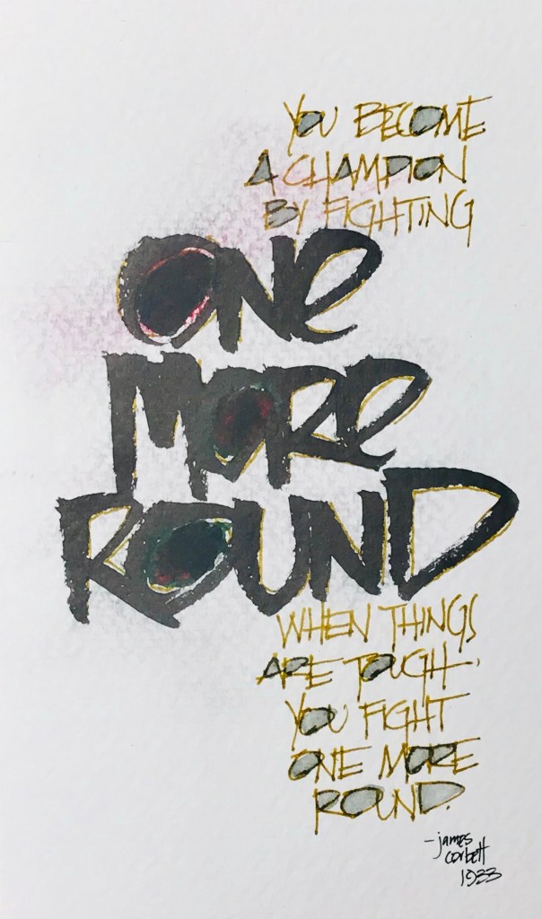 This applies to all of life – saving, athletics, personal relationships, a career, cleaning, moving even training a pet. Everything we want in life requires sacrifice and courage, everything requires that we are willing to risk winning and losing. And everything worthwhile means taking a risk and working through one more round of whatever it is you are trying to accomplish. No one got anywhere by being a quitter. At some point we have to decide if what we want is worth the risk of winning or losing or quitting. I hope that today you spend your time working towards something in your life that is worth one more round.