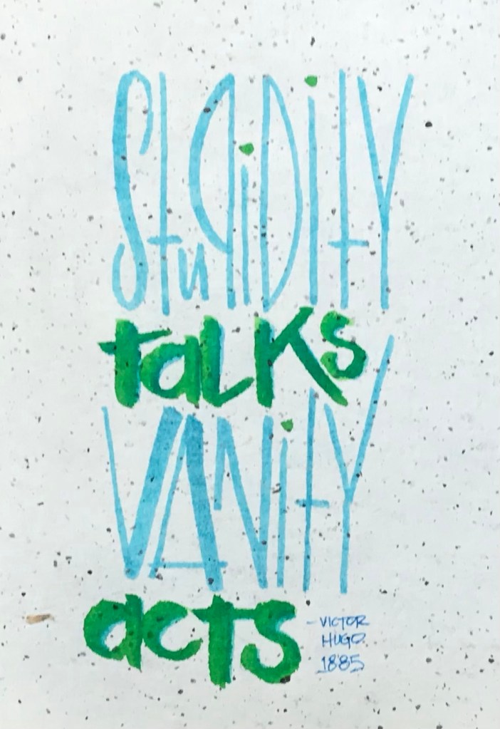 I have heard people use the word “stupid” several times today. They were describing people, decisions, the media, and usually said it with a hint of disgust in their tone. Stupid is a strong word, a degrading word, it can even shutdown someone’s soul. When I read this quote from Victor Hugo I was reminded that stupidity shows up a great deal in our language and decision making whereas vanity or ego shows up in our actions.