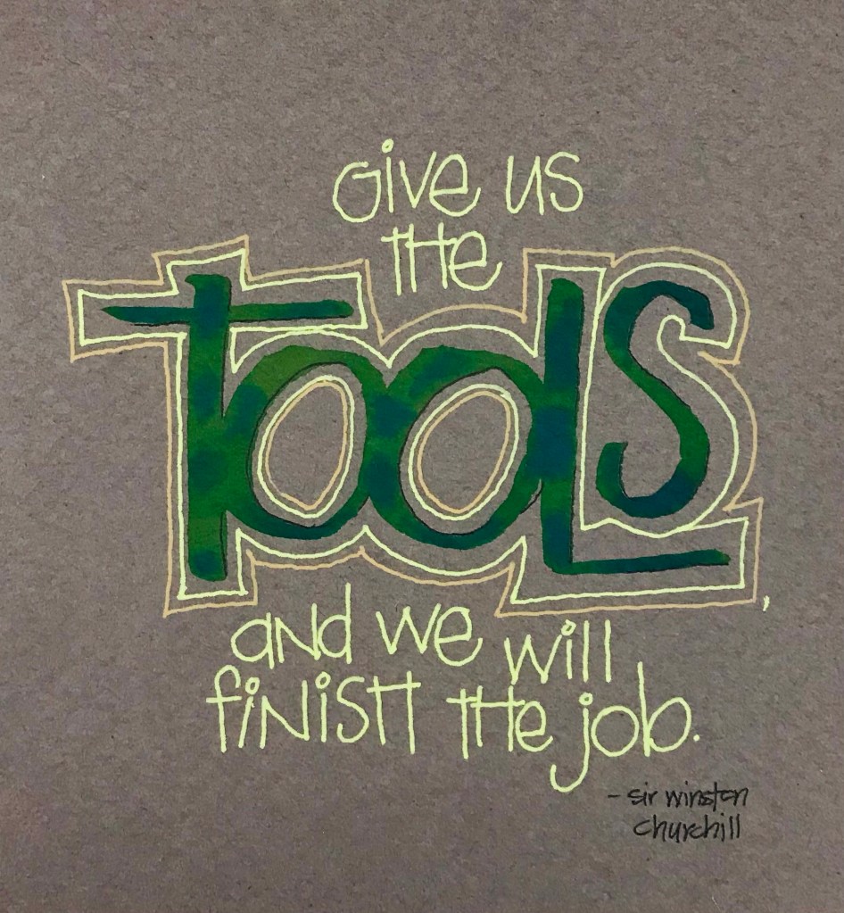 Sir Winston Churchill led the British people through World War II. As Prime Minister he inspired them to dig deep, stand together and fight against the evil invading their soil. It must have been a frightening time and one in which practical words were needed to give people hope that they could fight regardless of their place in the empire. To talk about tools and getting the job done, no matter the person’s profession the citizens could understand and be included in the fight to save their home.