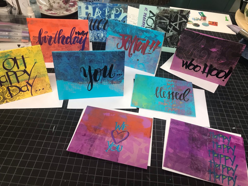 The prompt for week thirty-five in our fifty week calligraphy challenge was ‘greeting card’. We were tasked with making a card of some kind, suitable for mailing. For me it was perfect timing as my niece’s fortieth birthday was a few weeks away. My goal was to create forty cards to mail for her birthday. Here you can see a small sample of the many I completed.