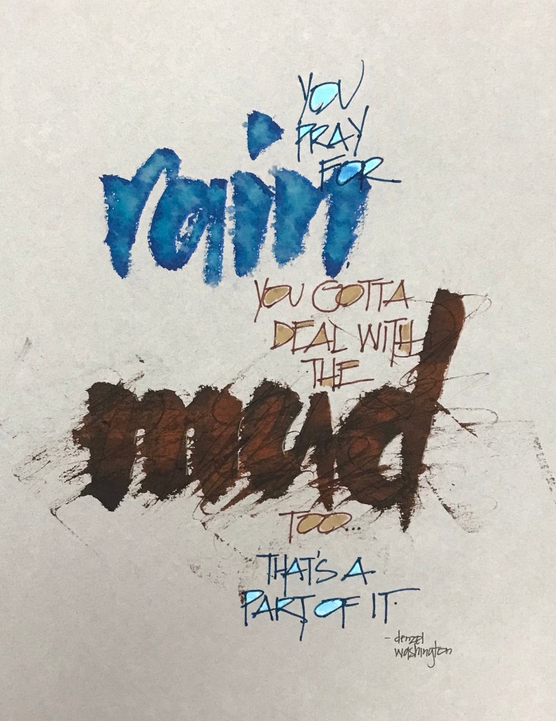 It was a stormy night when I was in my studio creating. I read this quote and ‘saw’ exactly how I wanted to portray the mud. Brown, murky, messy and out of control. It’s true, rain brings such life and with that comes such mess. We must be willing to handle both sides – the good and the frustrating- in order to progress and prosper in life.
