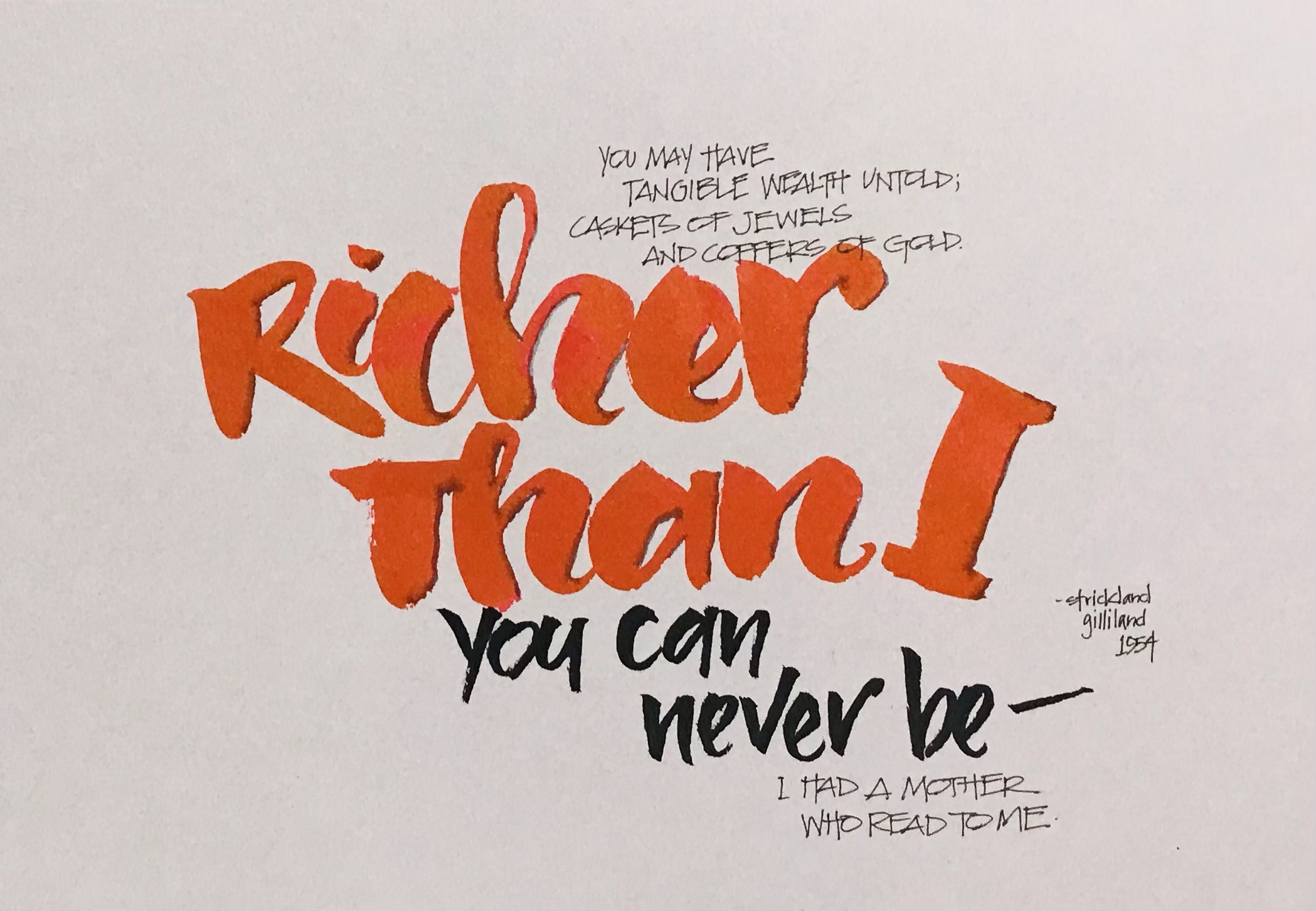 Find a child or teen in your world, an older friend or budding creative and read a book out loud together. Talk about it, imagine together, let the words build an imagination that doesn’t stop. The time and talking will make you both rich indeed, rich beyond what anyone can take away.