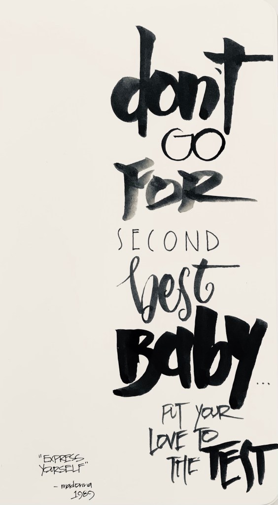 I was in high school when Madonna hit the charts. She was an explosion of energy, creativity and she wrote songs that made us think and act differently. In this song Express Yourself she reminds us about the things that make love true and powerful. Which means we have to be honest with ourselves about what we do, who we do it with and how that lasts long term. Madonna has been reinventing herself for more than forty years and still has the power to pull out all the stops. She is never afraid to reflect, reinvent and challenge her self to do better.